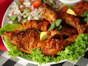 Serve smoky tandoori chicken with tamarind sauce & salad.