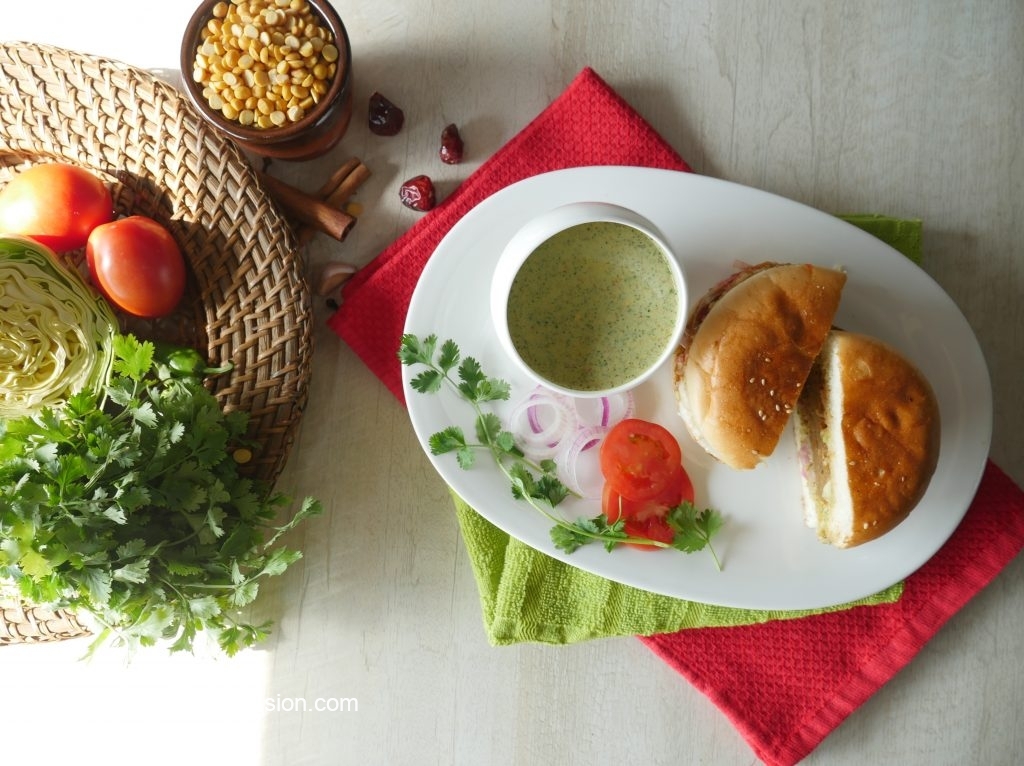 Blender mein hara dhania,lehsan,hari mirch,sabut lal mirch,podina,tatri,namak,zeera,lemon juice aur dahi dal ker ache tarhan blend ker lein.Bun kabab chutney tayyar hai.