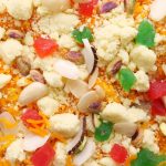 -Garnish with khoya,tutti fruiti,almonds,pistachios,dried coconut,cham cham & serve!