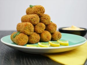Take a mixture and make a shape of croquettes.