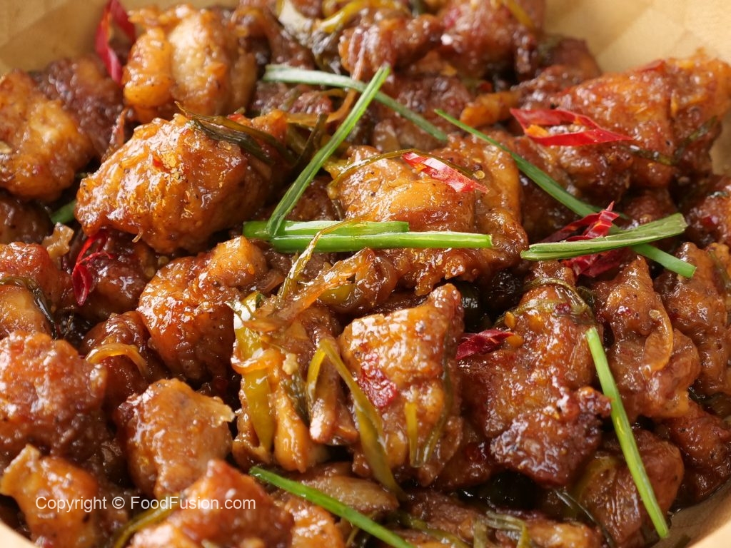 -Frying pan mein cooking oil garam karein aur marinated chicken ko darmiyani ancch per golden & crispy ho janay tak fry ker lein & side per rakh dein.