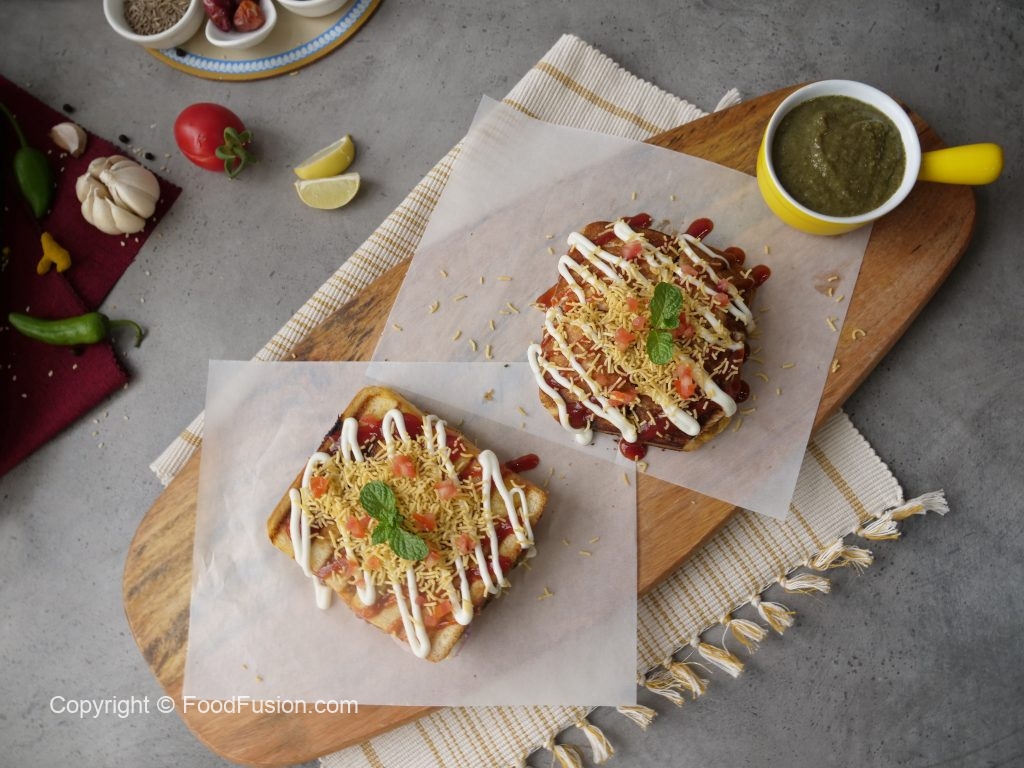 Place sandwich on a grill pan & grill from both sides until golden brown (makes 3-4).