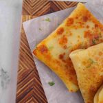 -Place 1 crepe on the cutting board, add cheddar & Mozzarella cheese, prepared chicken filling, more cheese, apply slurry, fold the corners, stuff filling inside & seal it properly.