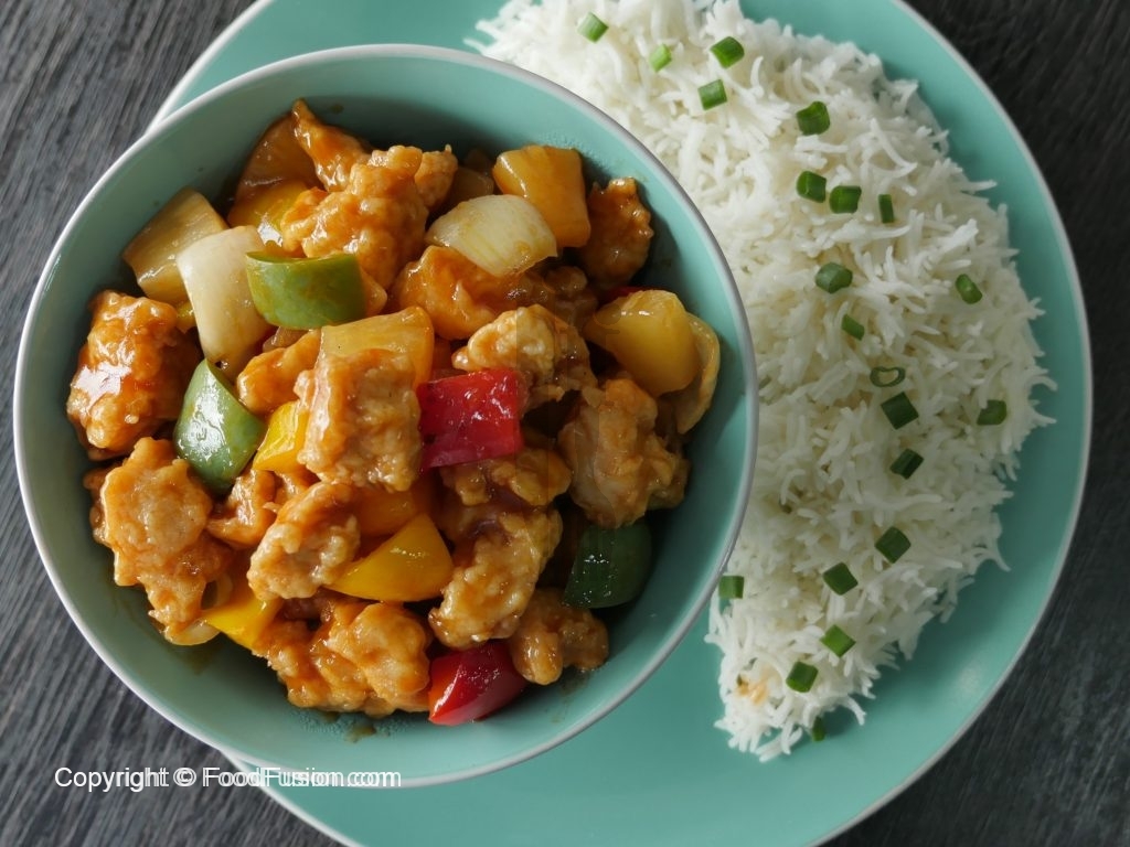Us he karhai mein oil,tomato ketchup,brown sugar,soy sauce,namak,pineapple juice aur sirka dal ker ache tarhan mix ker lein.