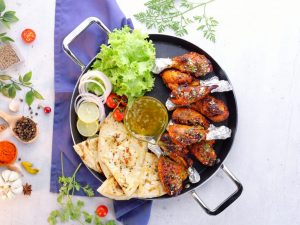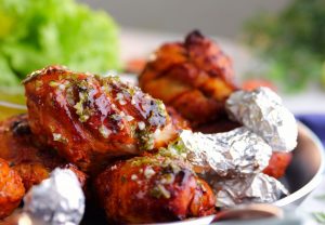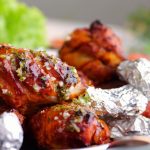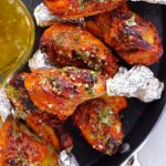 -Brush prepared garlic mint butter sauce on chicken drumsticks & serve with naan!