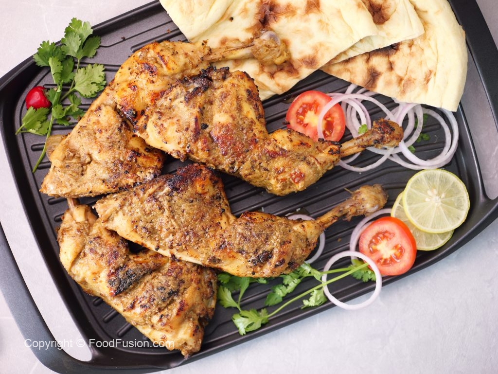-Place a grill rack on stove & char grill chicken on direct flame for 1-2 minutes & apply cooking oil in between.