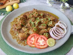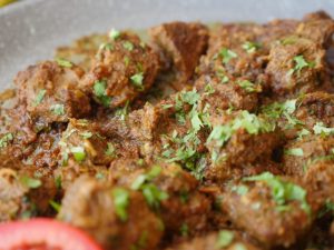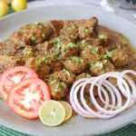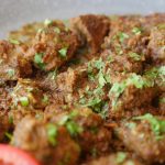 On a girdle brush cooking oil, add marinated beef, cover and cook for 18-20 minutes on low flame.