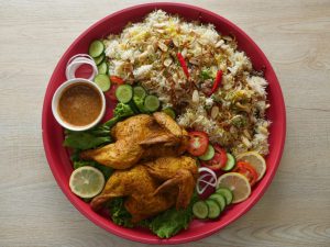 -Serving bowl mein rice, daal, crispy aloo, prepared teekhi chutney, pickle onion aur fried curry leaves dal kar serve karen.