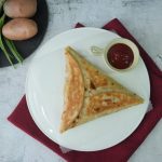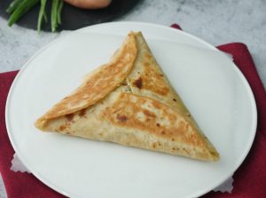 Take tortillas or roti,add potato & chicken filling and spread in triangle shape.