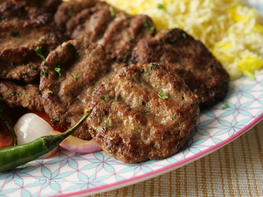 -Kofta kebab ko saffron butter rice,grilled vegetables & tahini yogurt sauce ka saath serve karein.