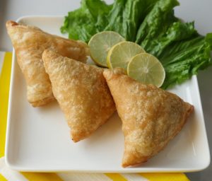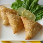 Take one part and fold in a cone shape,add prepared filling and seal the edges.