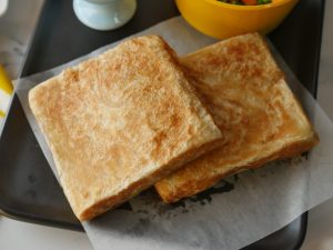 On baking tray,place butter paper and prepared stuffed paratha & apply egg wash.