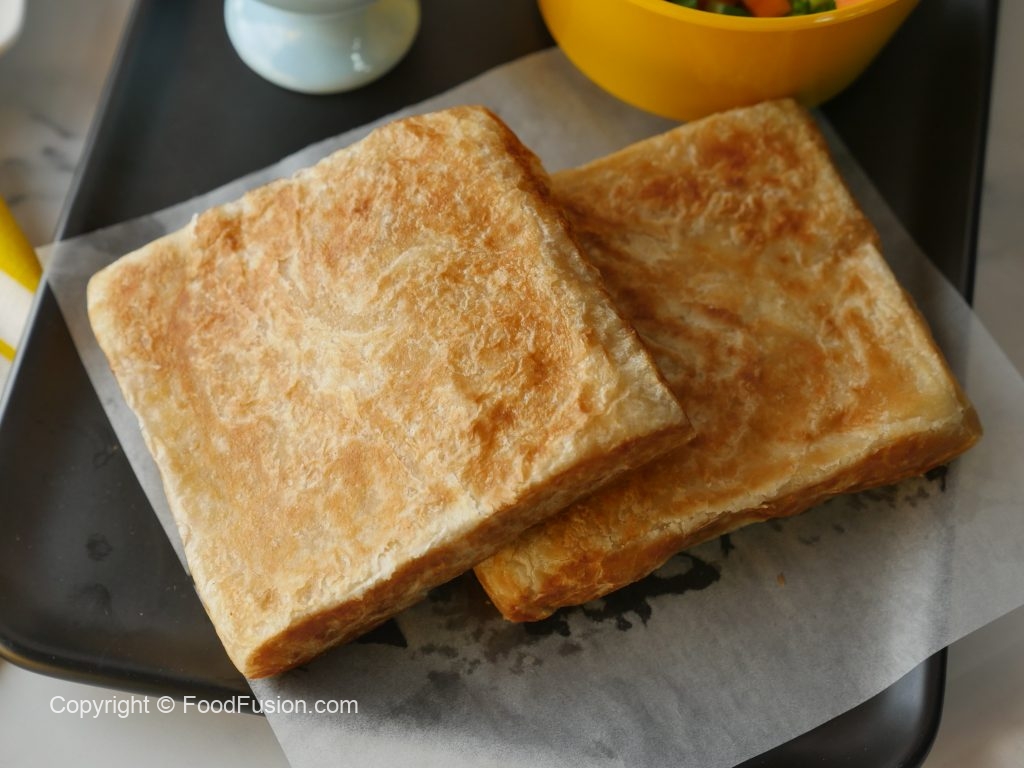 Place cheese slice,add filling and egg omelet and fold all four sides.