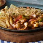 Makhan dal ker pheela lein,band gobhi leaves rakh ker upper sa fried rice,potato fried,stir-fried vegetables aur tayyar shashlik sauce dal ker serve karein!