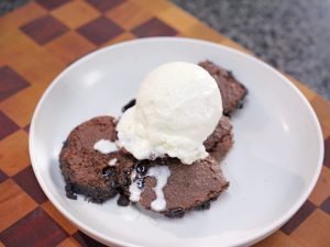 -Take it out of the oven & let it cool for 15 -20 minutes, scoop out the brownie pudding & add it to a serving plate, serve with ice-cream.
