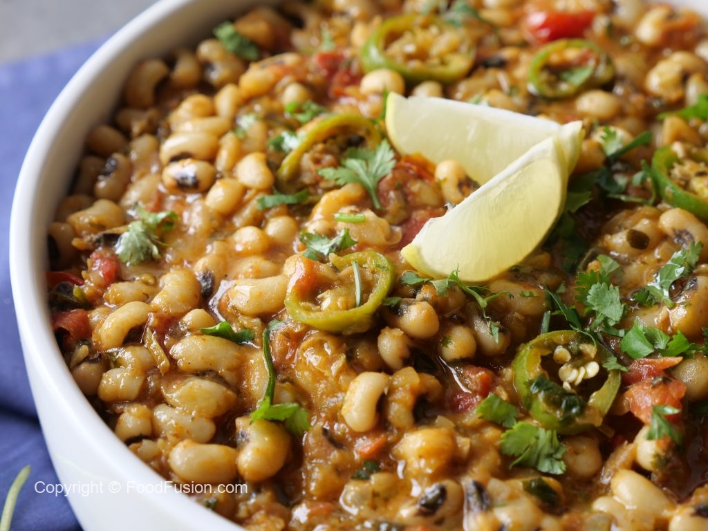 -In a pressure cooker,add black eyed beans,salt,water & mix well,cover & pressure cook for 12-15 minutes then strain & set aside.