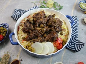 -Serve za’atar chicken with prepared saffron rice!